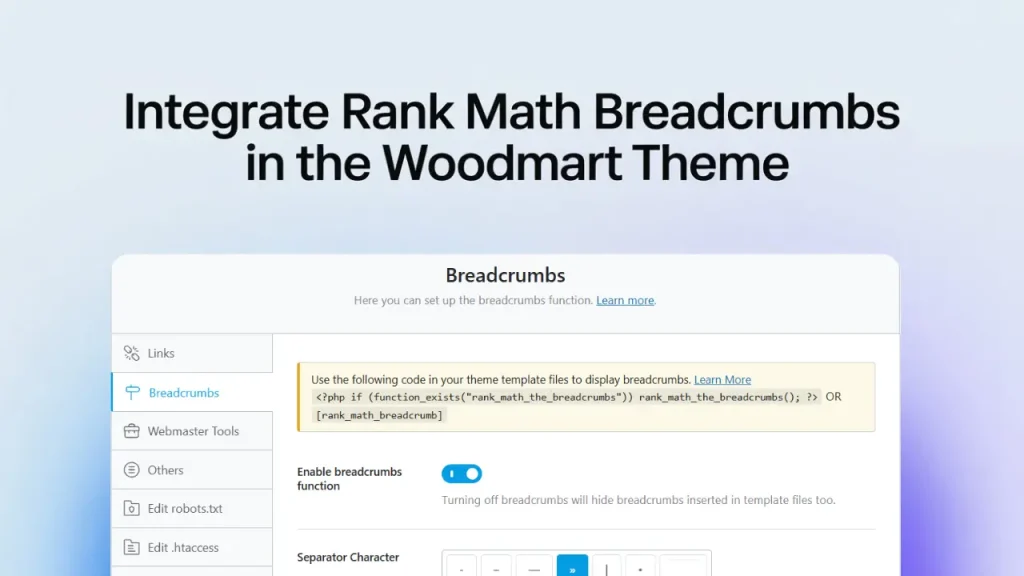 ✔️ Replace WoodMart breadcrumbs with Rank Math